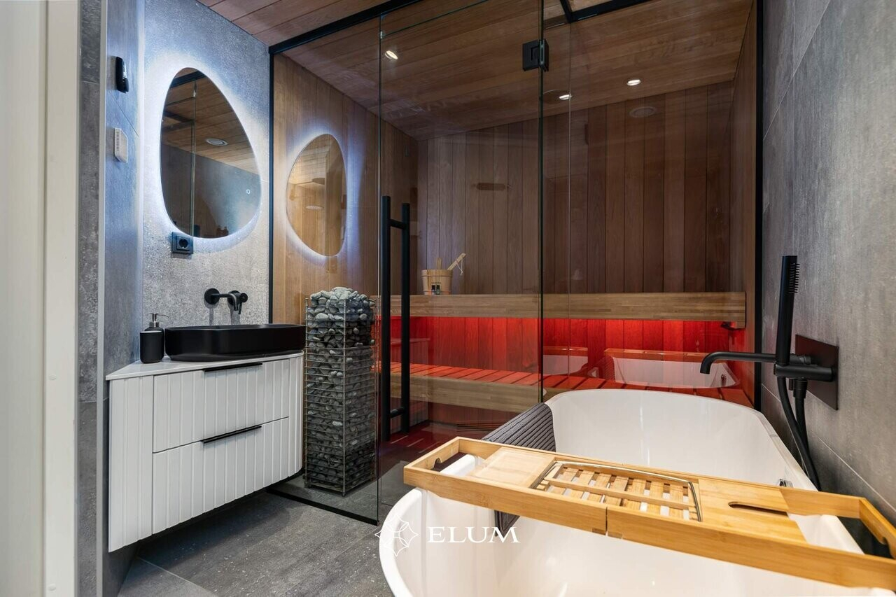 Interjööri iseloomustavad moodsad heledamad toonid, tammeparkett, kõrged laed ning kogu tervikuga haakuv mööbel. Korteris on soojustagastusega sundventilatsioon, mis tagab alati värske õhu.