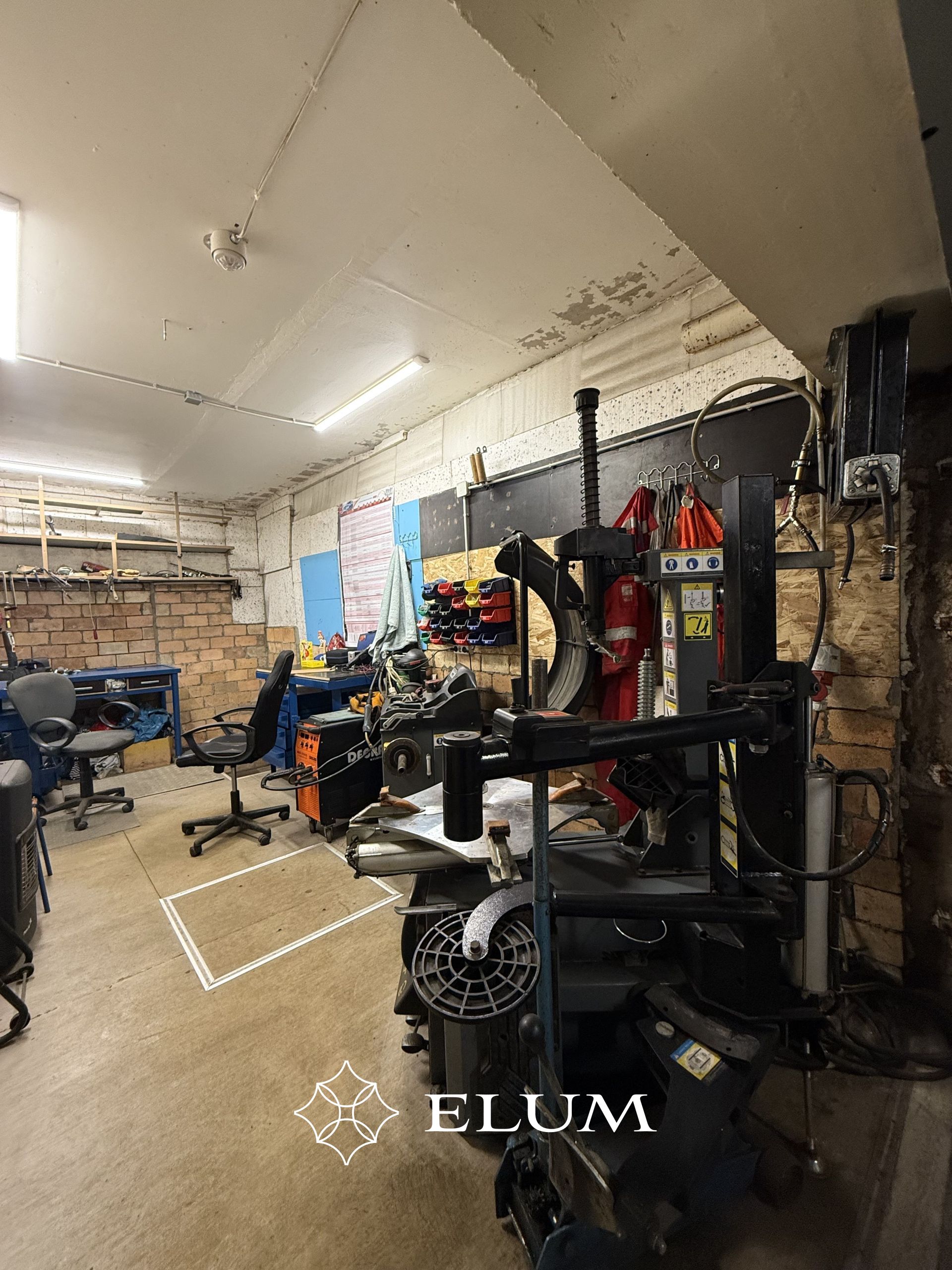 Mugav töökoda asub kahes renoveeritud ja ühendatud garaažiboksides metallist väravatega.