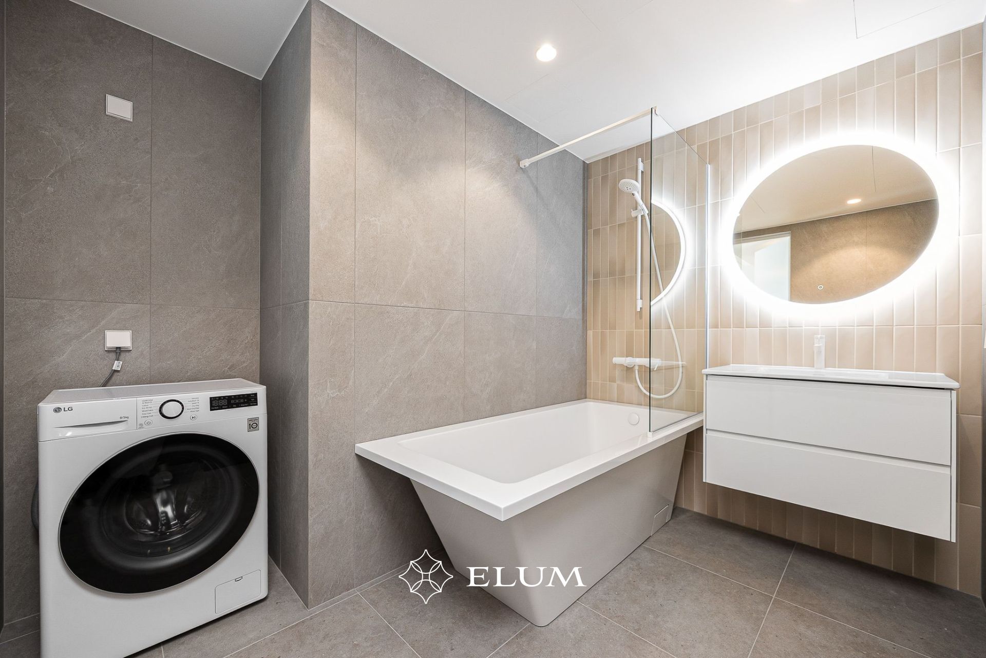 Vannituba tualettruum, kus on olemas pesumasin kuivatiga.
