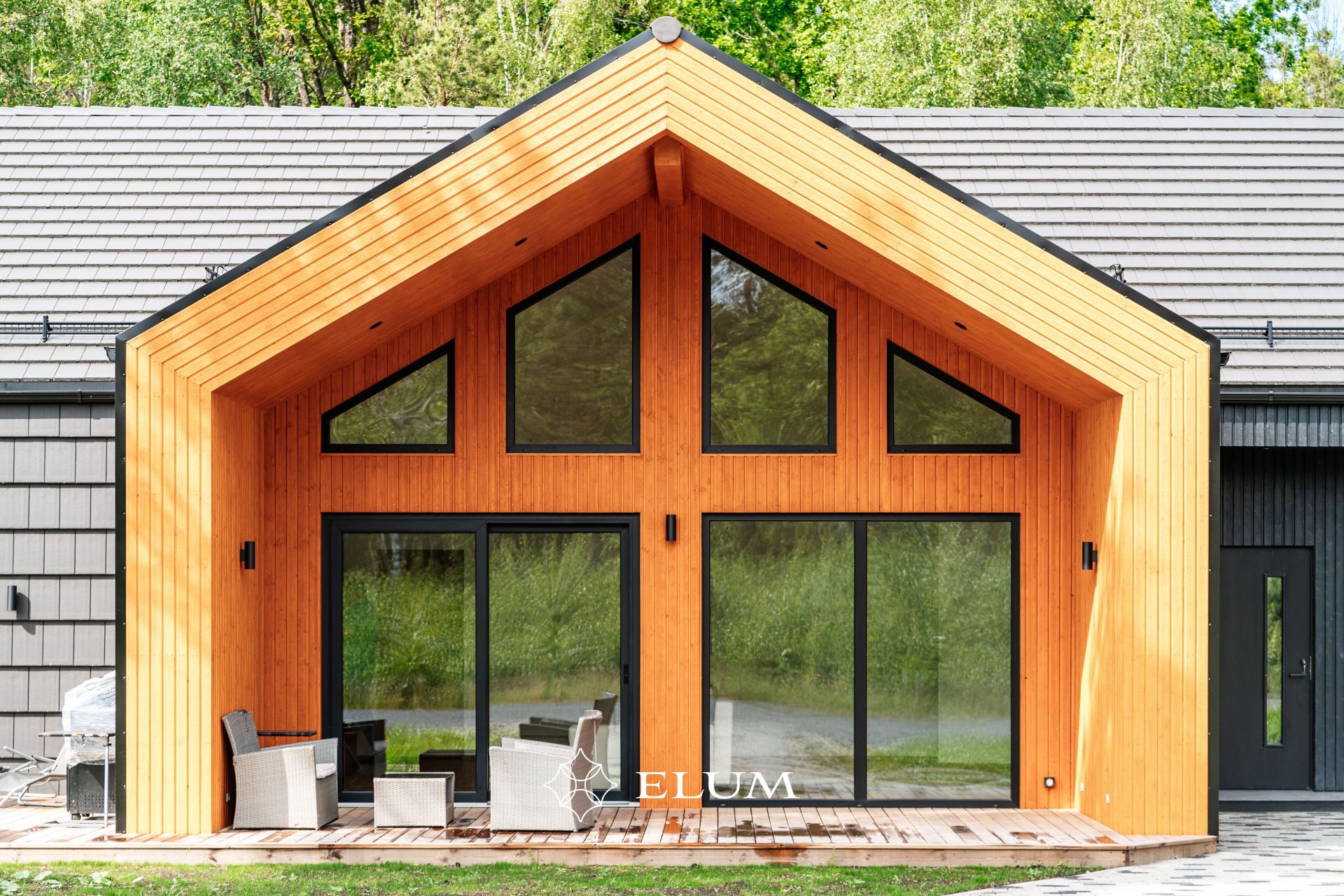 + Fassaadil on kombineeritud katusekive ja naturaalset puitu.