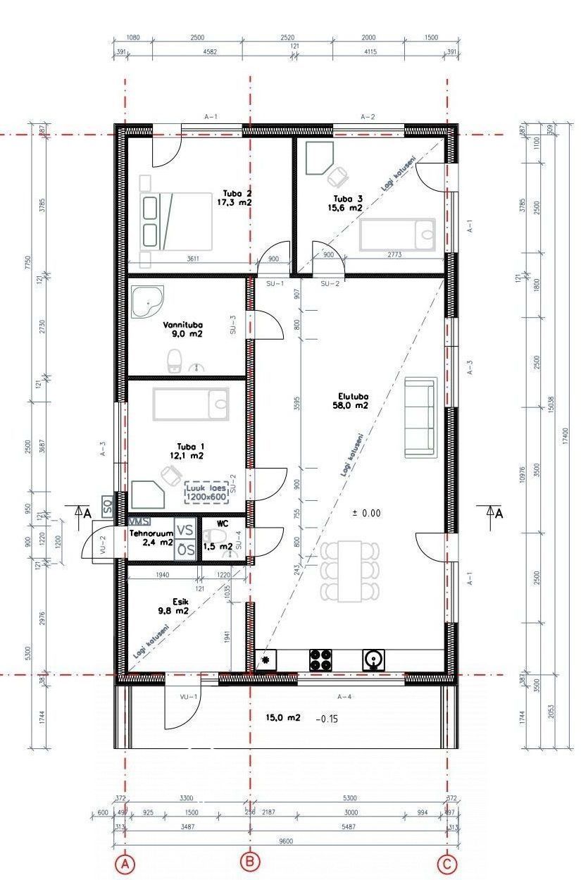 - Suletud netopind 125,7m2 (eluruumi pind 123,3m2 ja tehnopind 2,4m2);