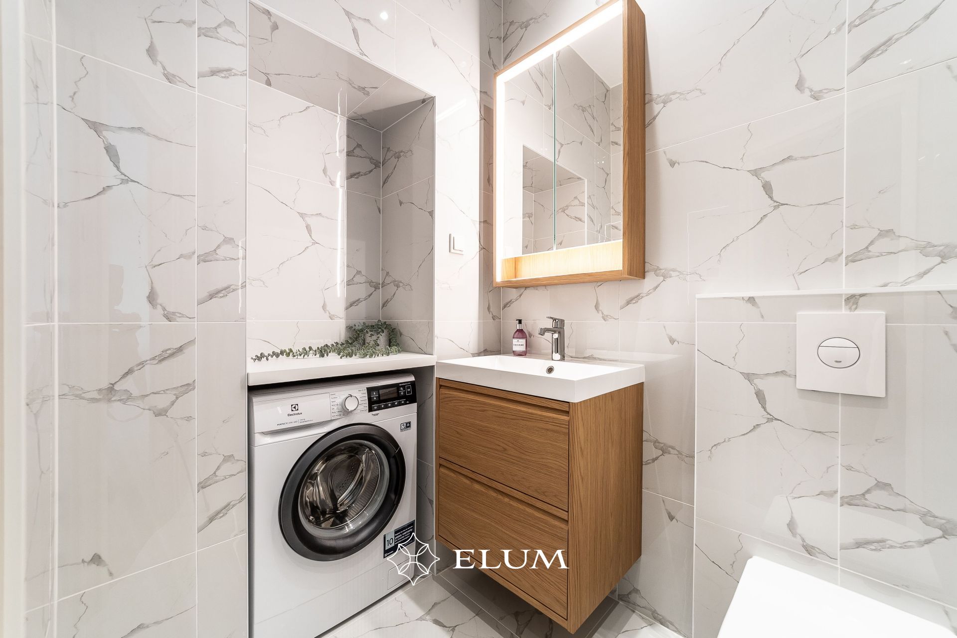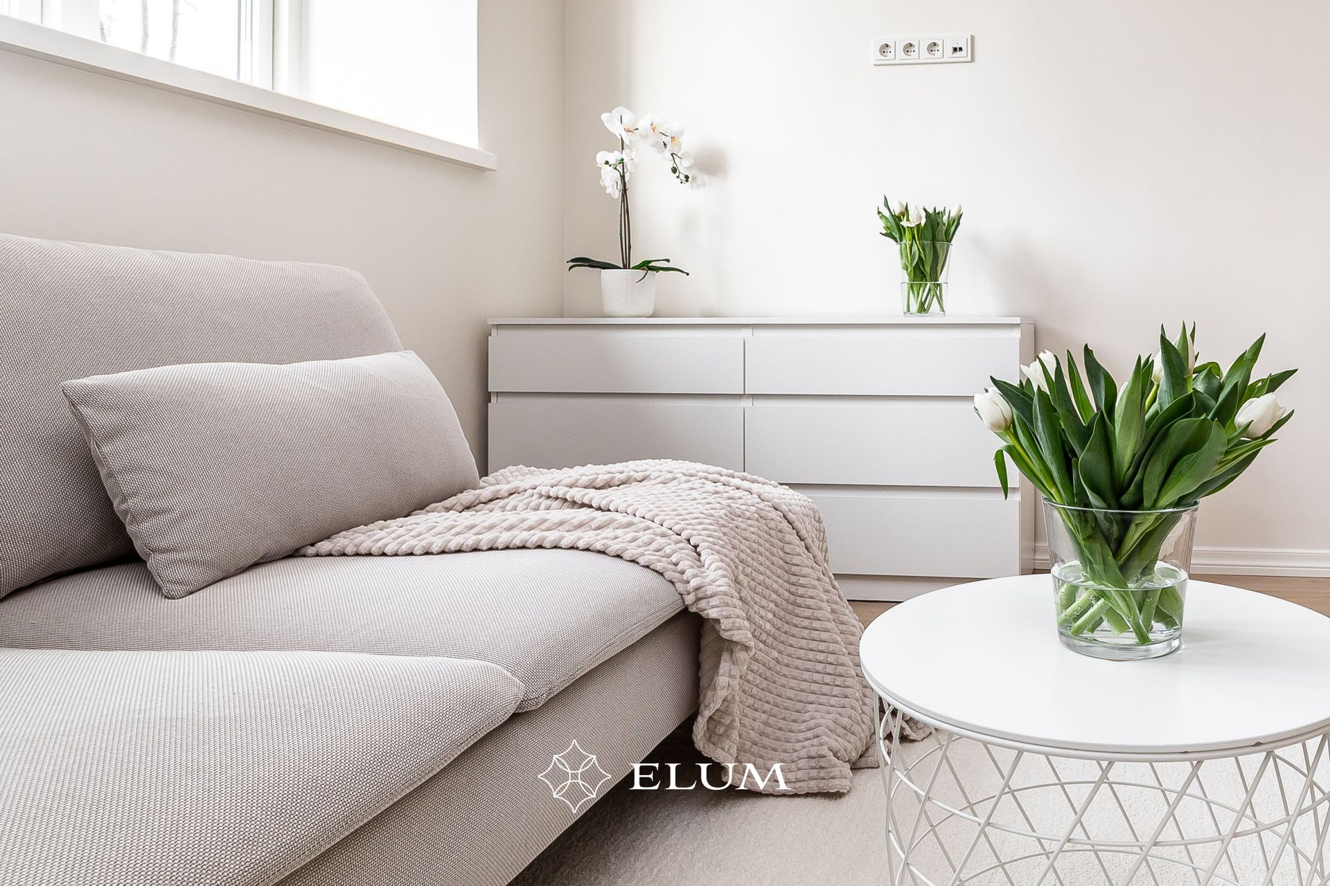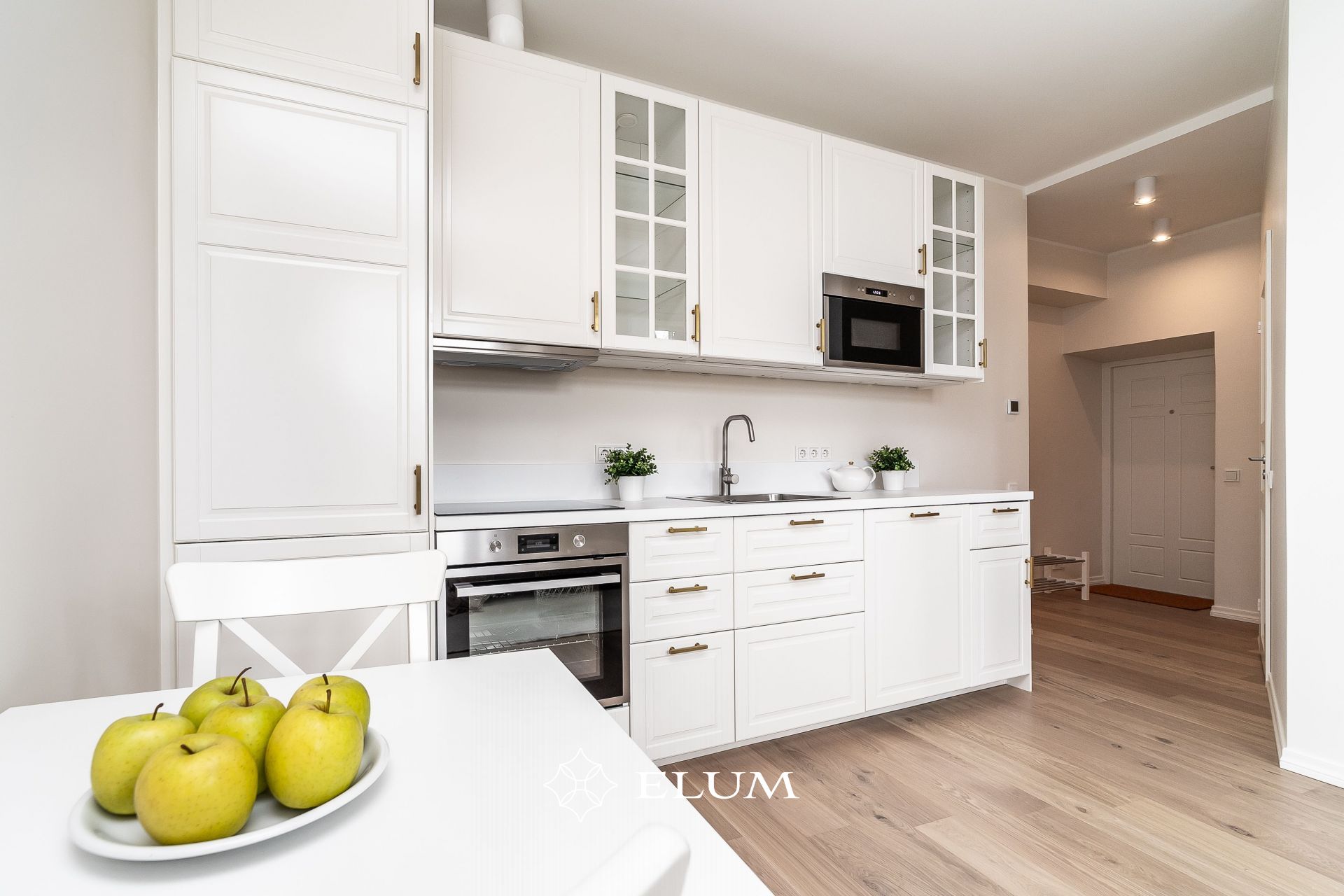 Korter antakse üürile piltidel nähtava sisustuse ja tehnikaga, sh. on lisaks olemas päeva- ja külgkardinad. Köök on täisvarustuses: suur külmkapp, nõudepesumasin, keraamiline pliit, ahi, kubu ja integreeritud mikrolaineahi. Vannitoas on olemas pesumasin ja nii käsi-kui vihmadušš.