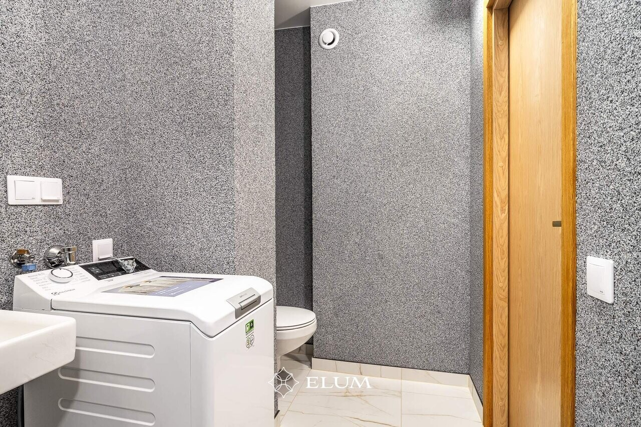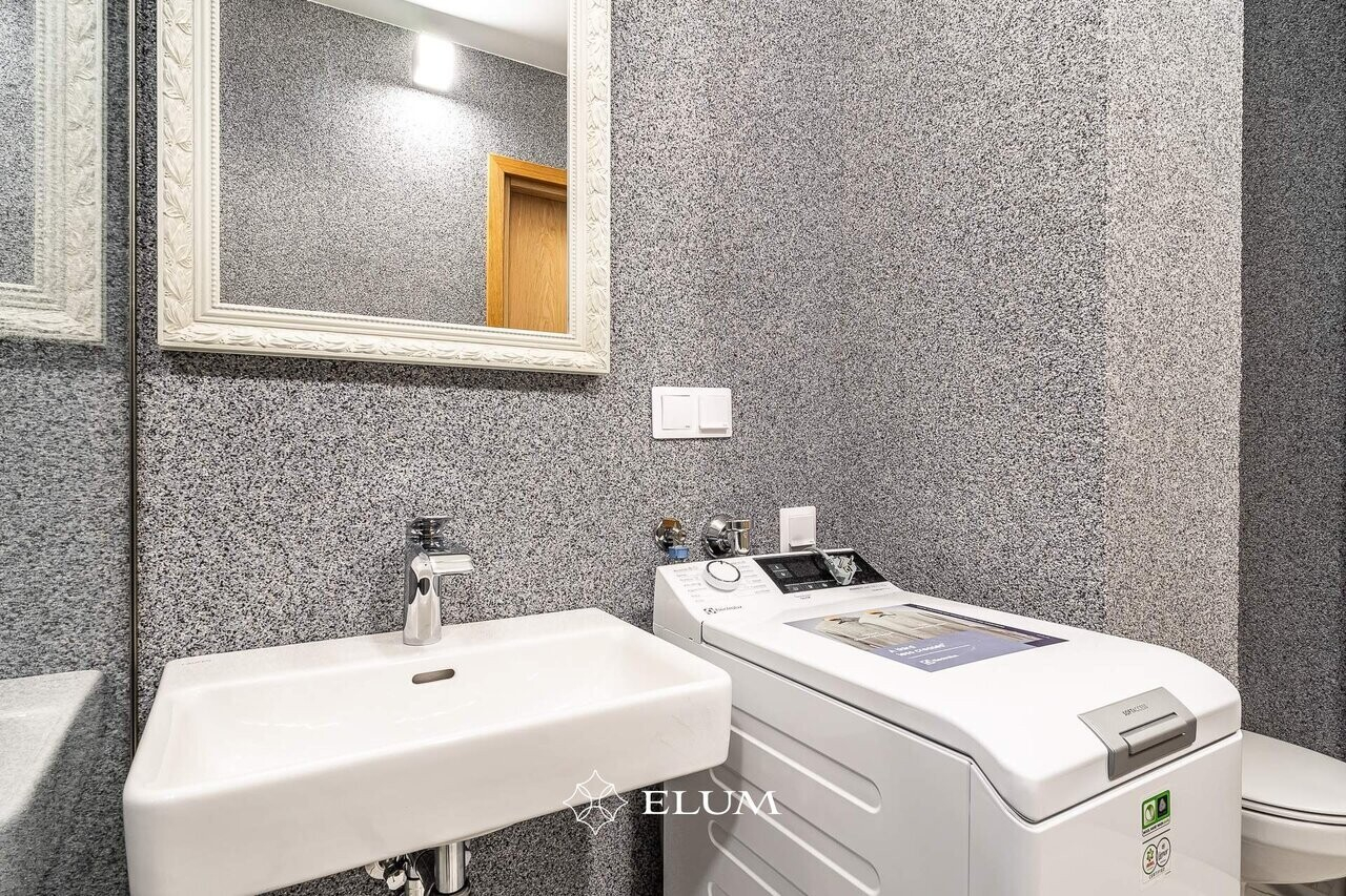 Eritellimusena valmistatud täisvineerist köök sisaldab endas uusi kodumasinaid Electroluxilt (induktsioonpliit, ahi, õhupuhasti, nõudepesumasin, külmik). Köögi töötasapinnaks on kasutatud tammestruktuuri, aktsendina on kasutatud musta induktsioonpliiti, valamut ja pronksist segistit. Töötasapinna tagune sein 100% must disainklaas.
