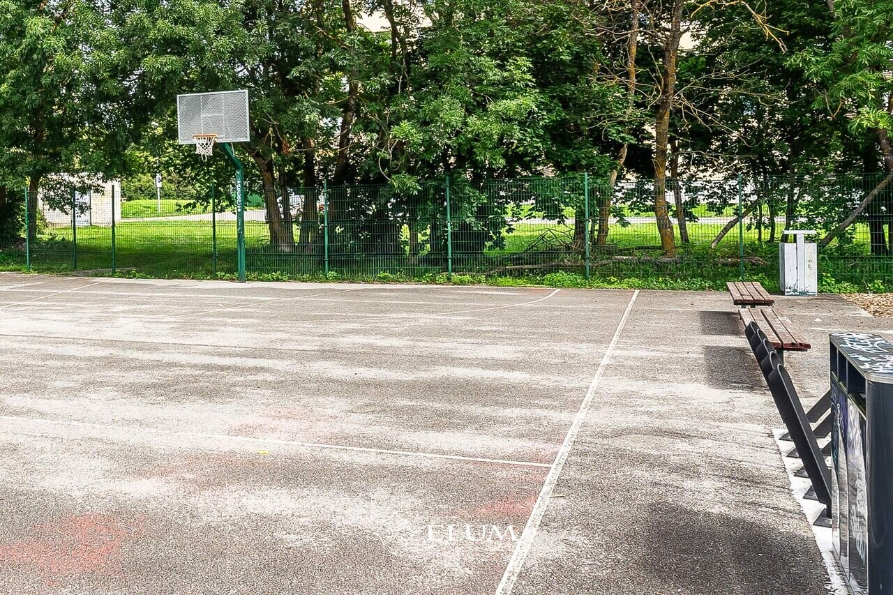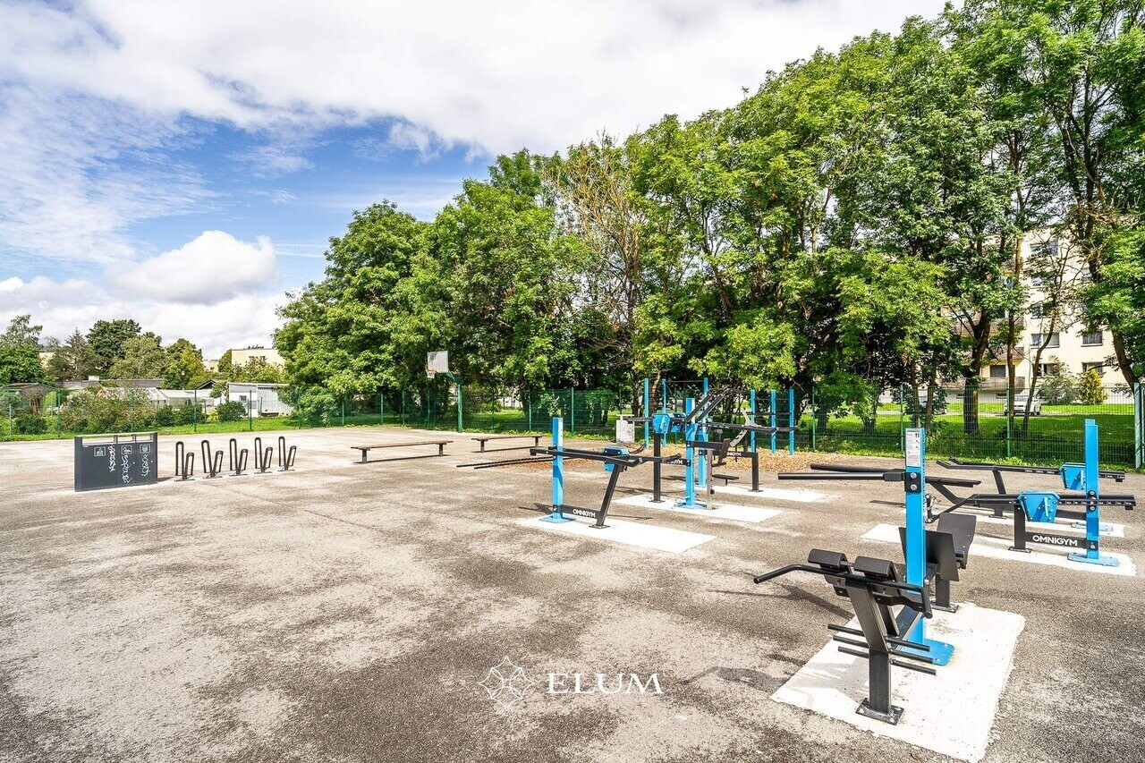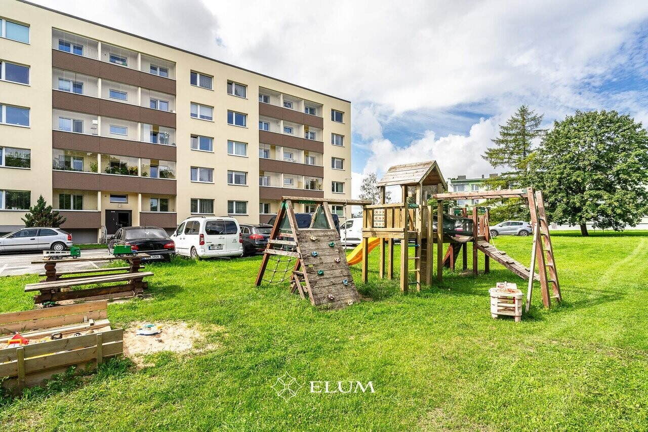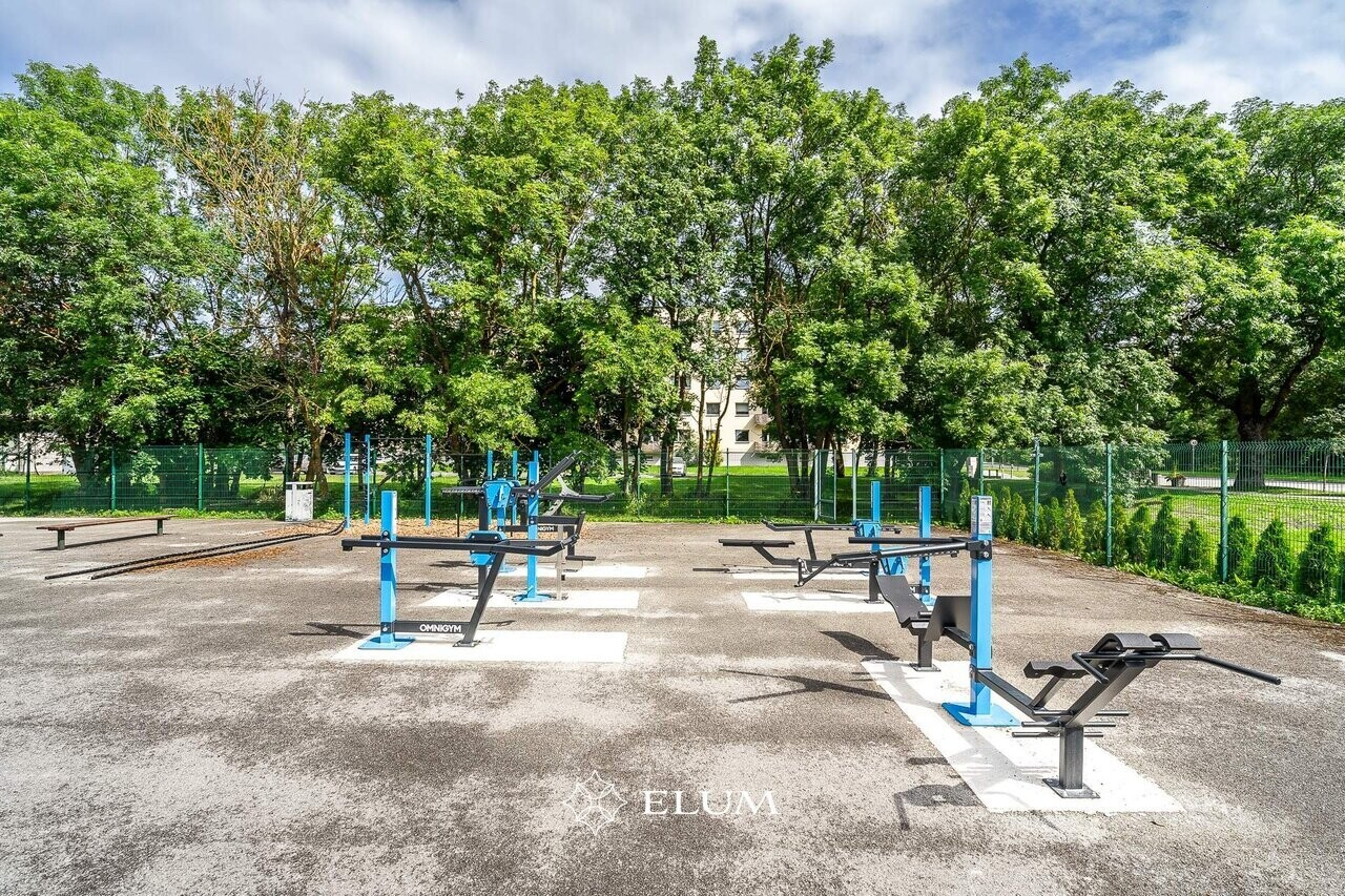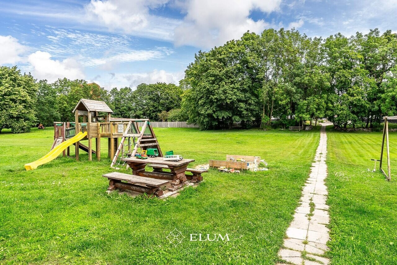 Kortermaja ees on suur muruplats mänguväljakuga ning maja taga korvpalliväljak ning jõulinnak.