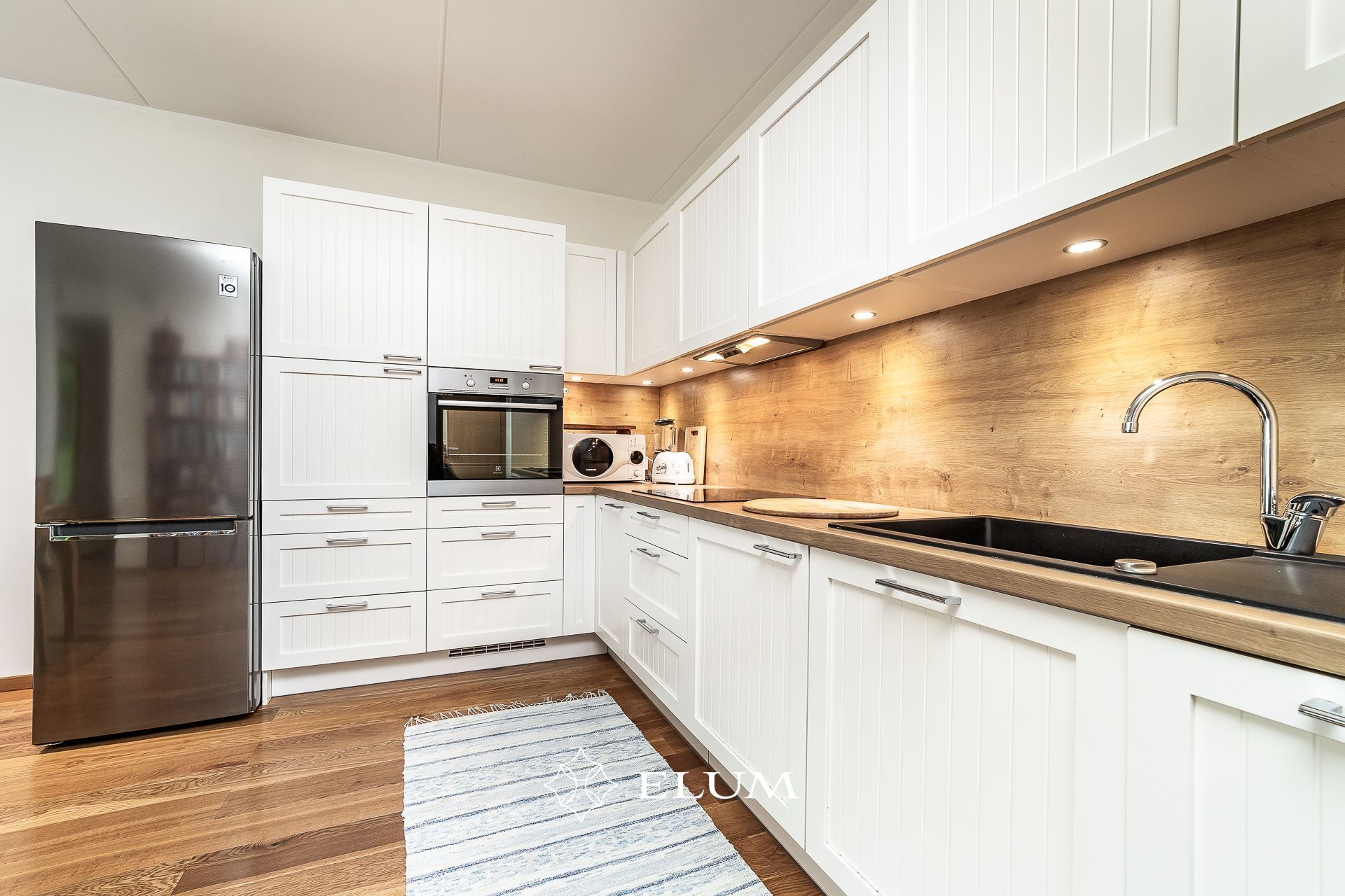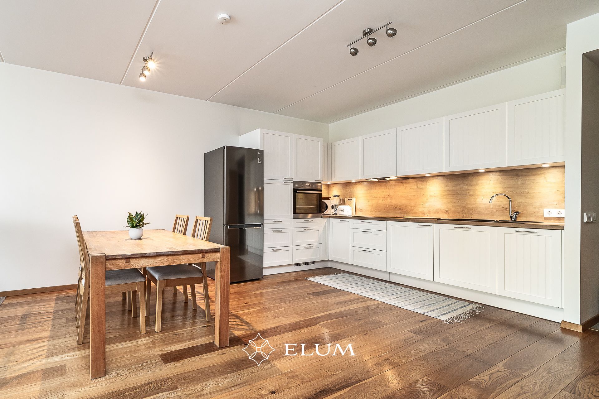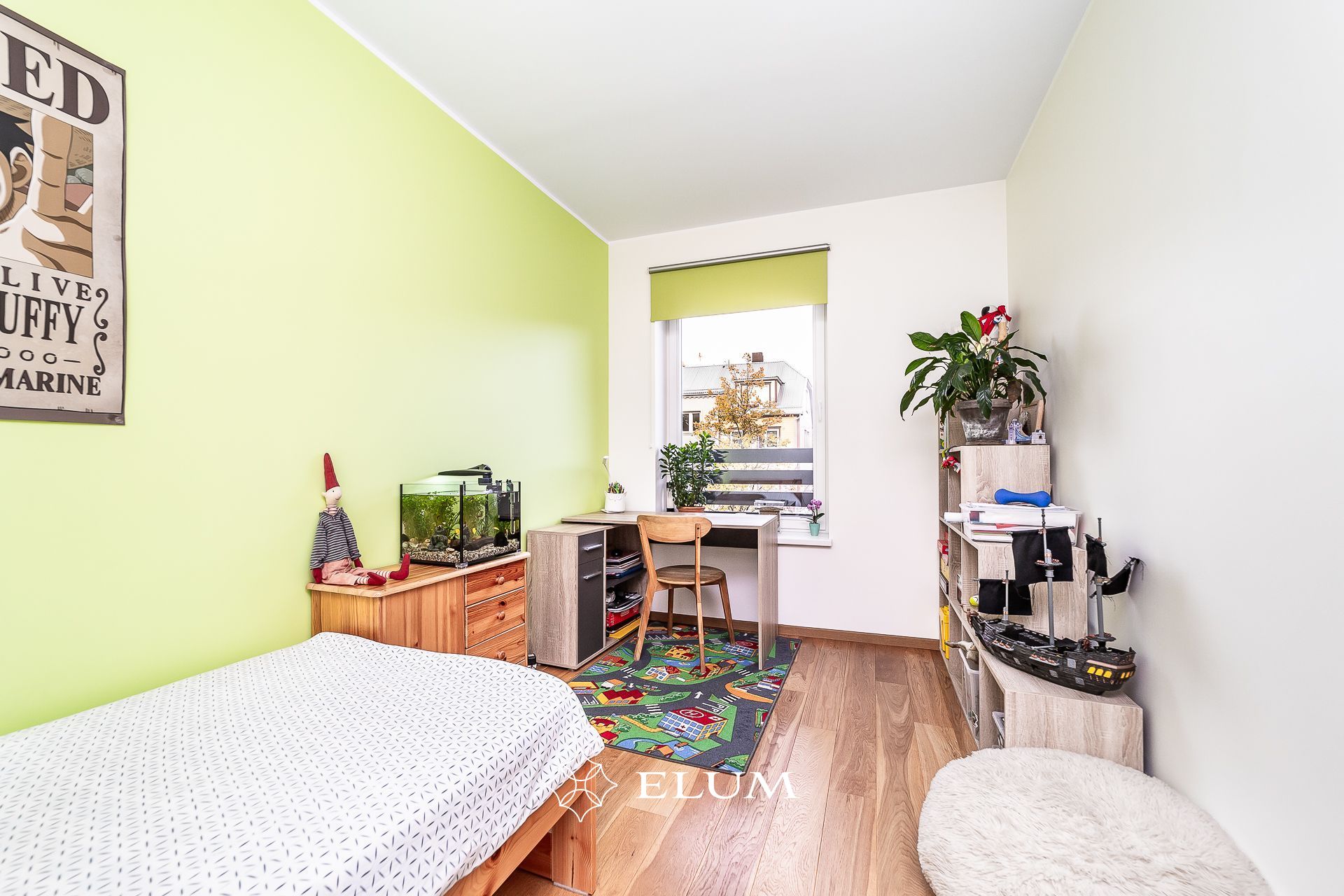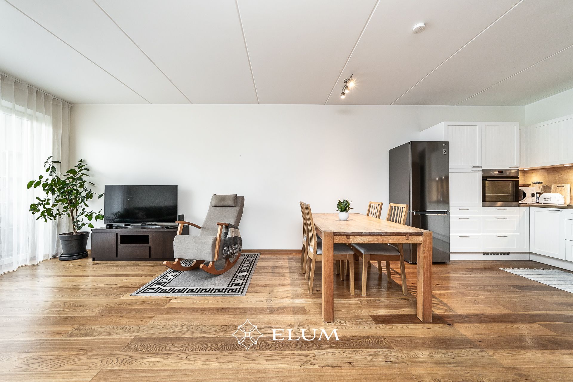 Korter asub kõrgel esimesel korrusel ja suurtest akendest avanevad ilusad vaated. Osad aknad paiknevad sõidutee poole, kuid kolmekordsed puitalumiiniumpakettaknad hoiavad korteri vaiksena. Korteris on avatud köögiga elutuba ja köögis olemas kogu vajalik tehnika.