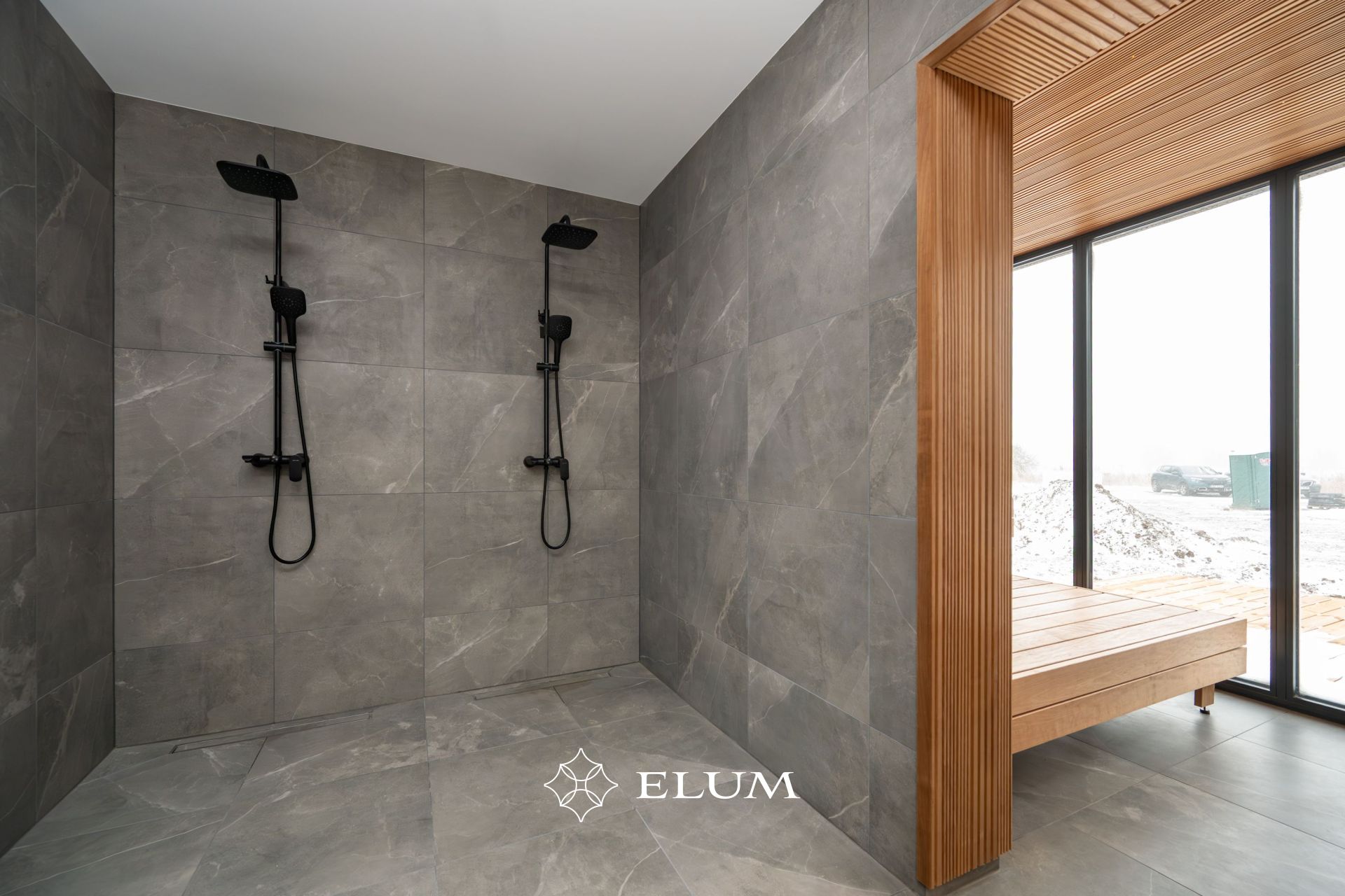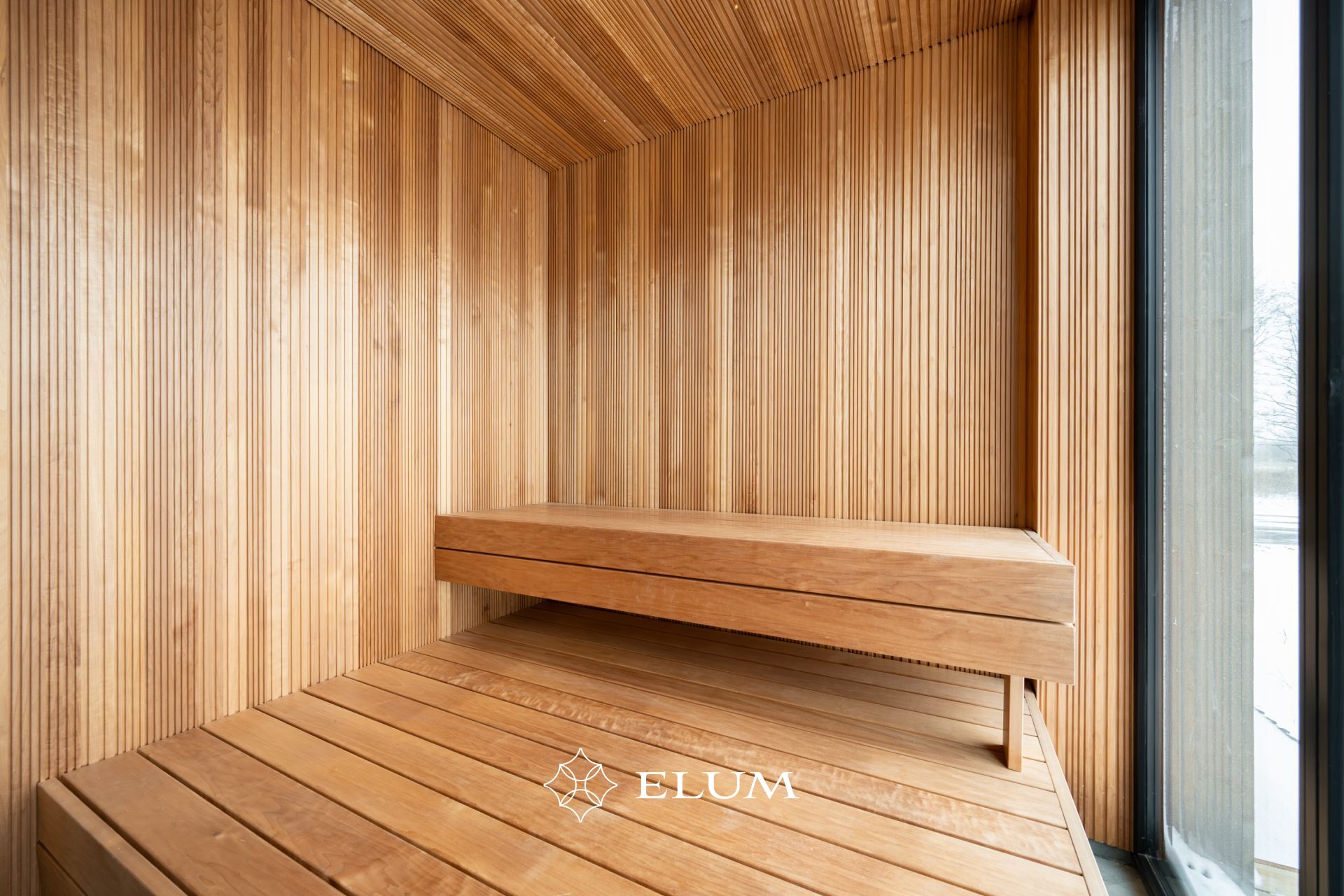 avar köök-elutuba, eraldi lisatuba (sobiv kabinetiks või külalistetoaks), garderoobiala ja WC. Esinduslik saun koos eesruumi ning kahe dušiga.