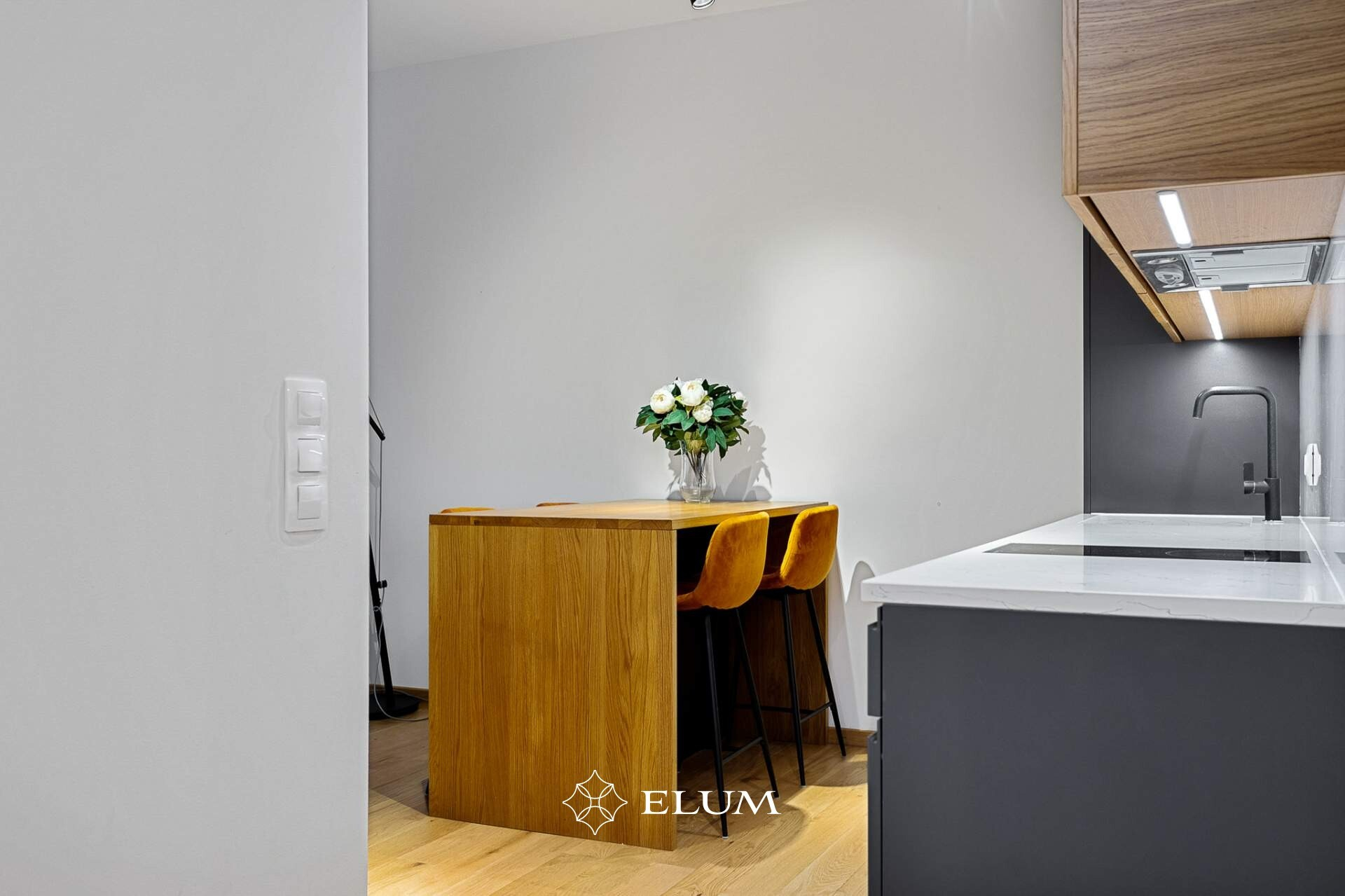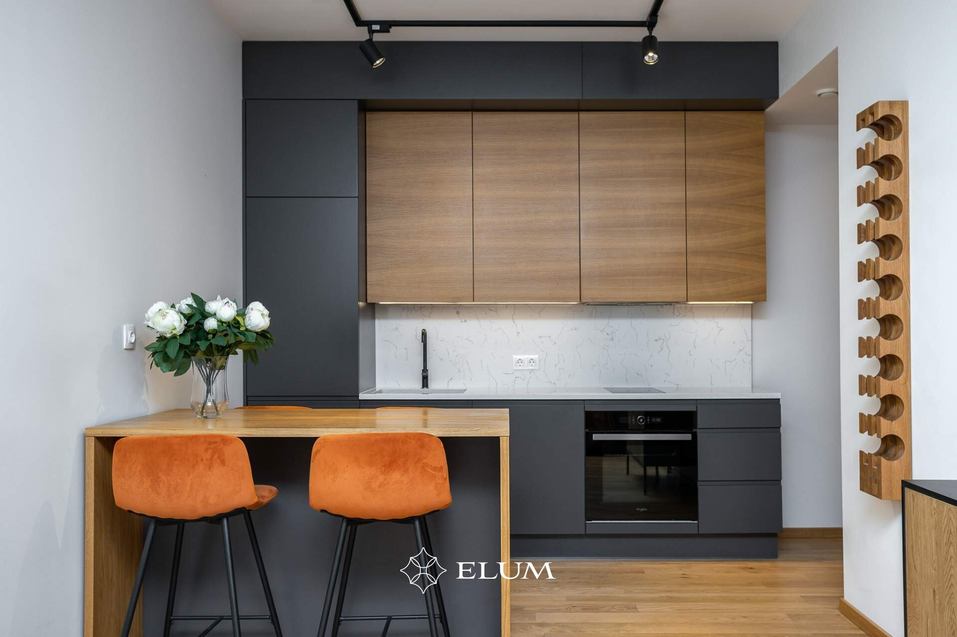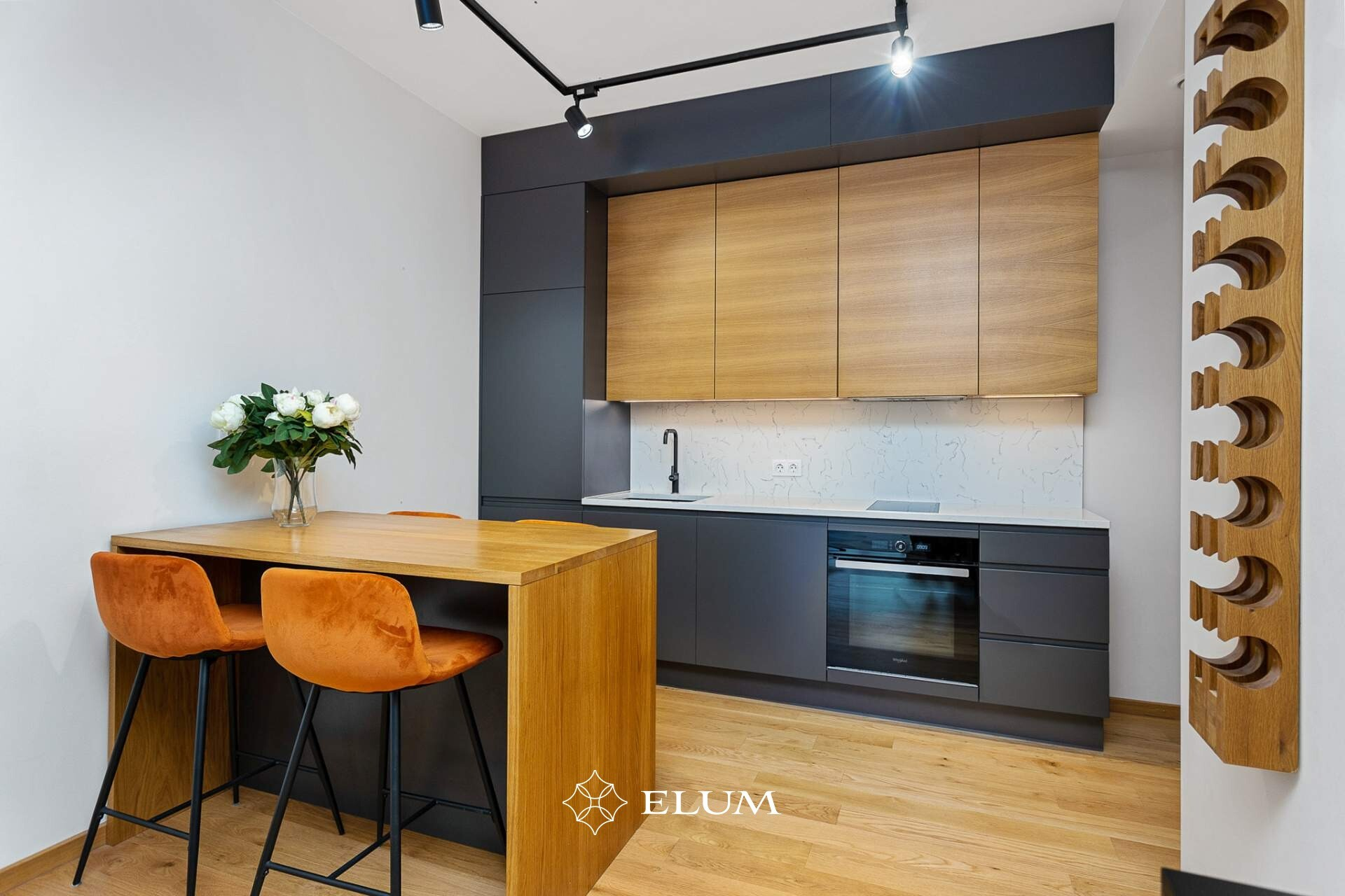 Interjööri iseloomustavad moodsad tumedamad toonid, puidust tammeparkett, kõrged laed ning kogu tervikuga haakuv mööbel. Talvekuudel annab sooja põrandaküte. Korteris on soojustagastusega sundventilatsioon, mis tagab alati värske õhu.