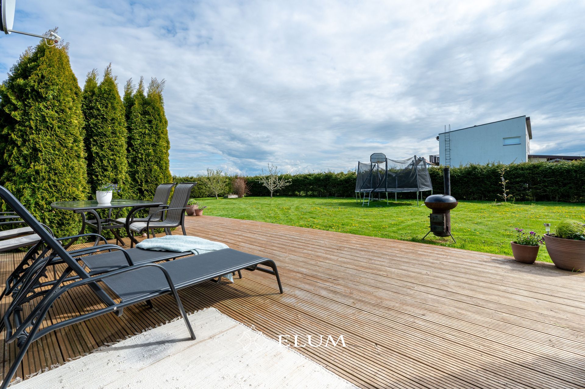 I korrus: esik, wc, tehnoruum/panipaik, avatud köök/elutuba, saun ja pesuruum. Köök on varustatud integreeritud tehnikaga (sh nõudepesumasin), pliit töötab nii gaasi kui elektriga. Elutoast pääs päikeselisele terrassile ja suurde aeda, kus muru eest hoolitseb mururobot.