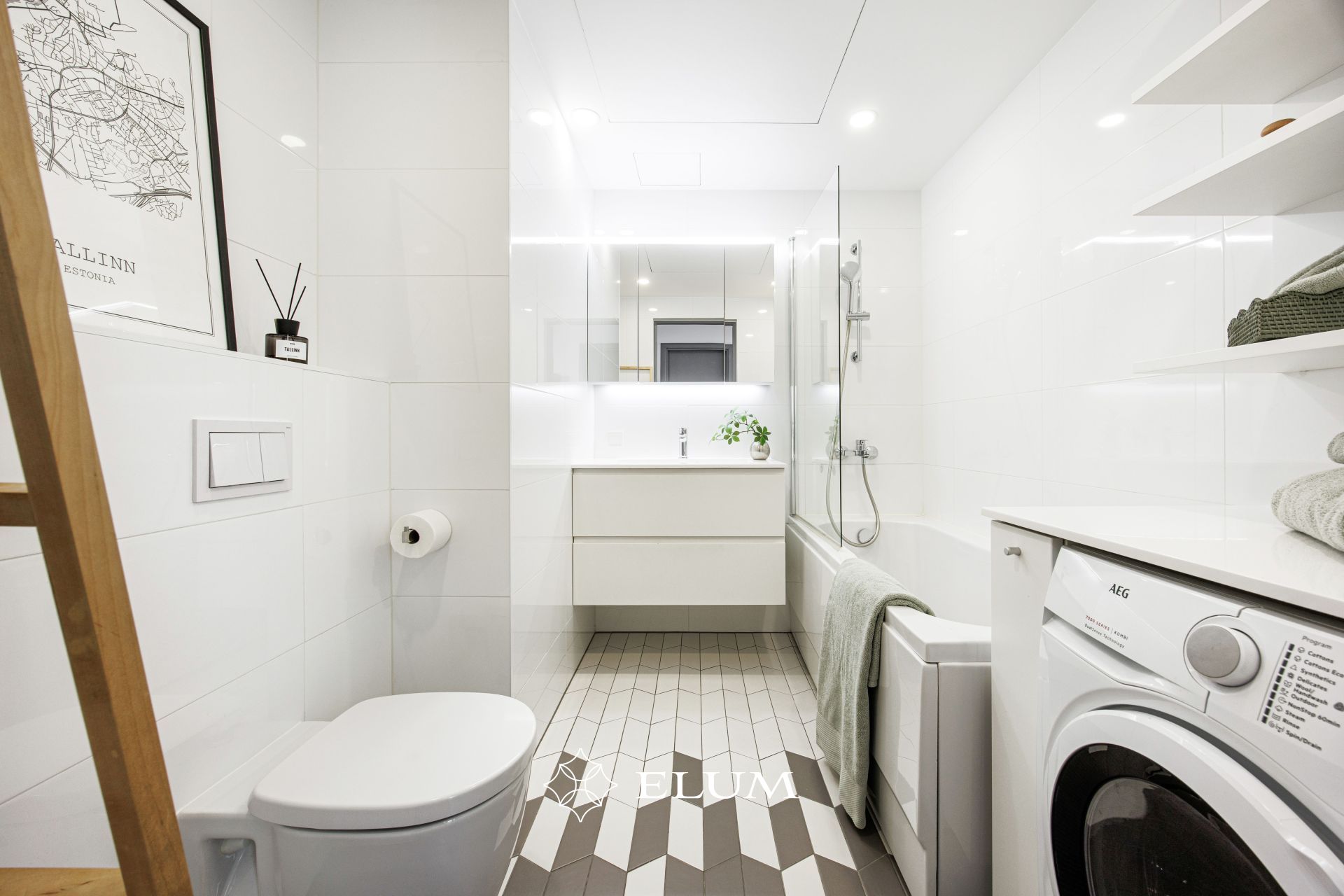 Köök on varustatud vajaliku tehnikaga. Nõudepesumasin, pliit, praeahi (Electrolux), külmik (Samsung), pesumasin (AEG).