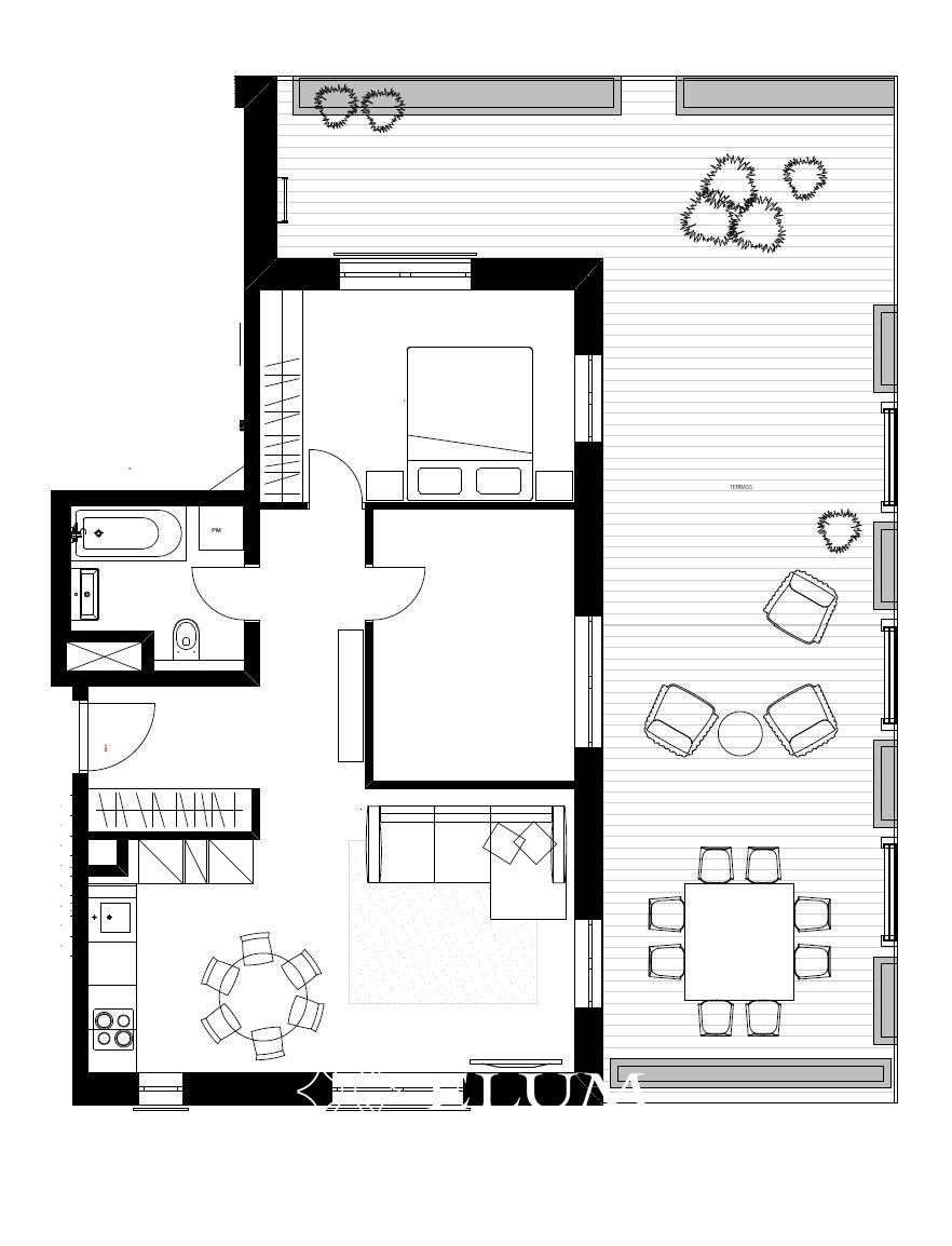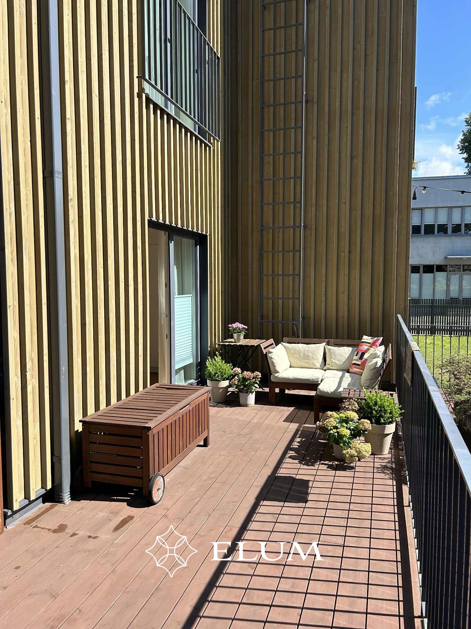 Korteri üheks suurimaks lisaväärtuseks on seda ümbritsev suur terrass, millele pääseb igast toast. Terrass avardab eluruumi ning loob sujuva ühenduse sise- ja välisruumi vahel – ideaalne koht hommikukohviks, päikese nautimiseks või pere ja sõpradega aja veetmiseks.