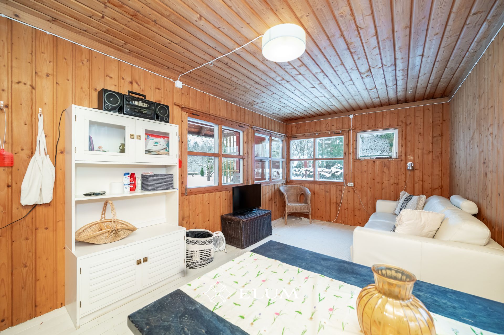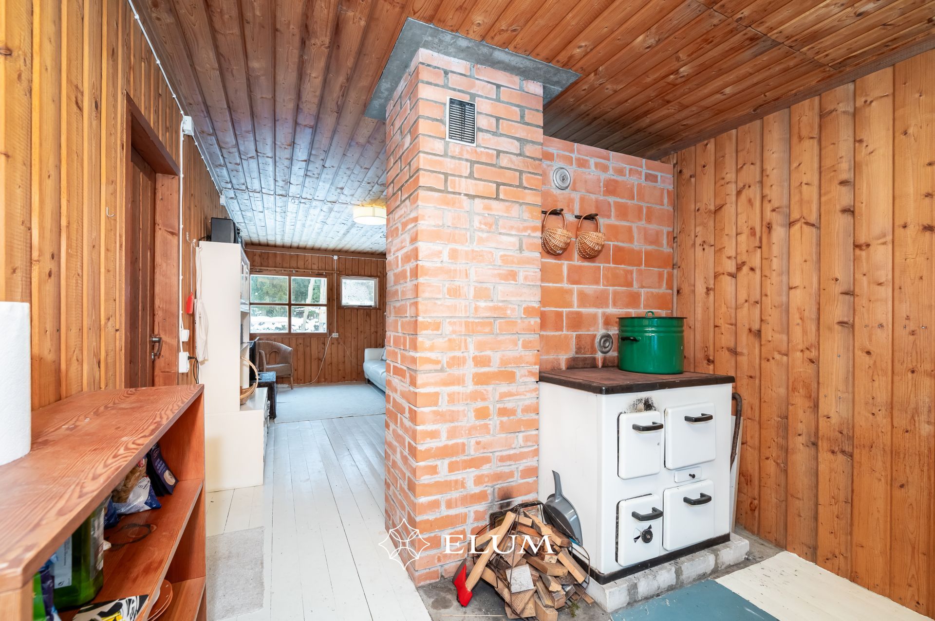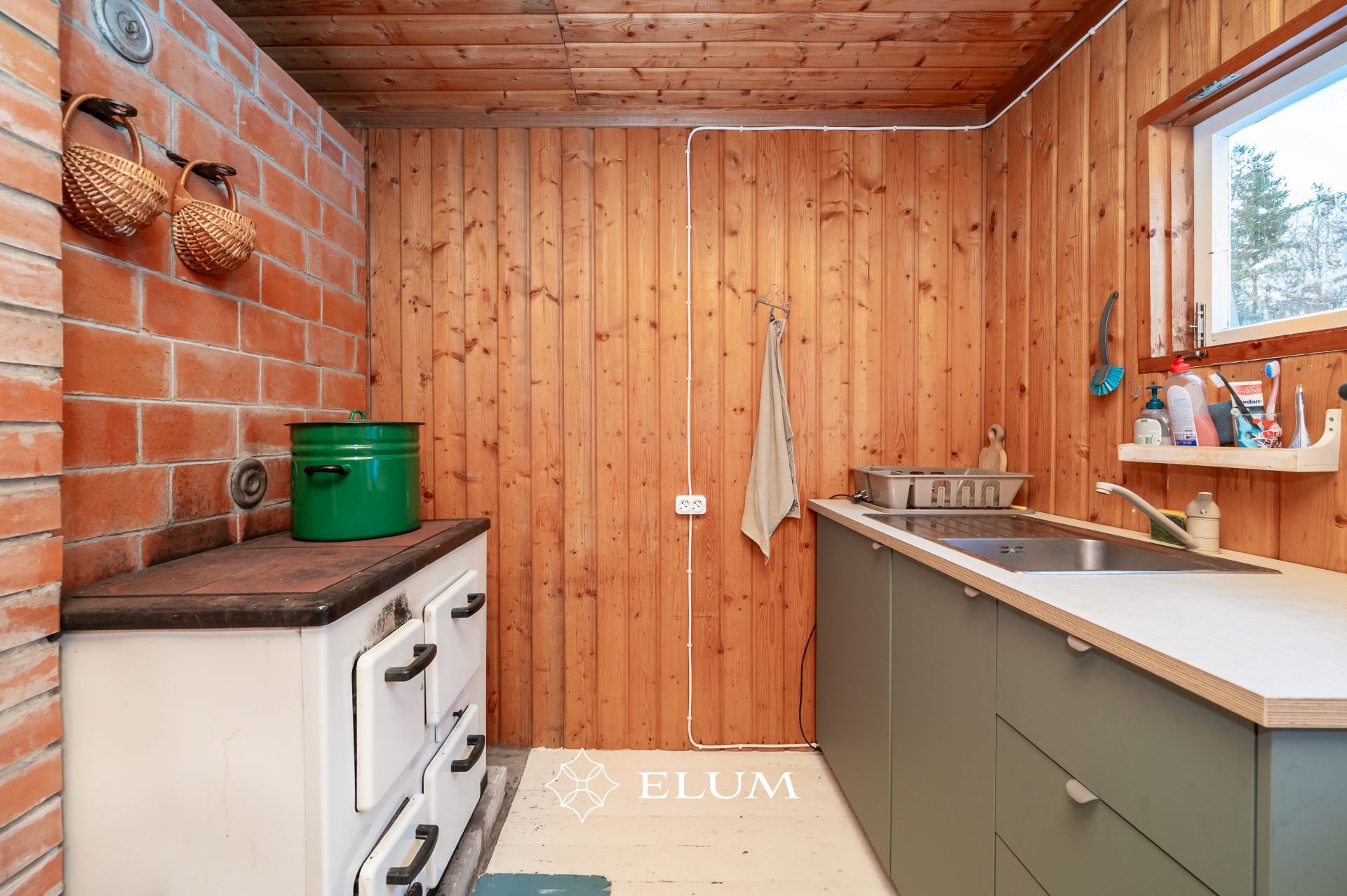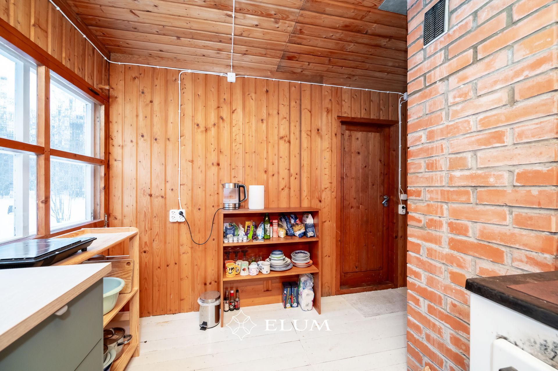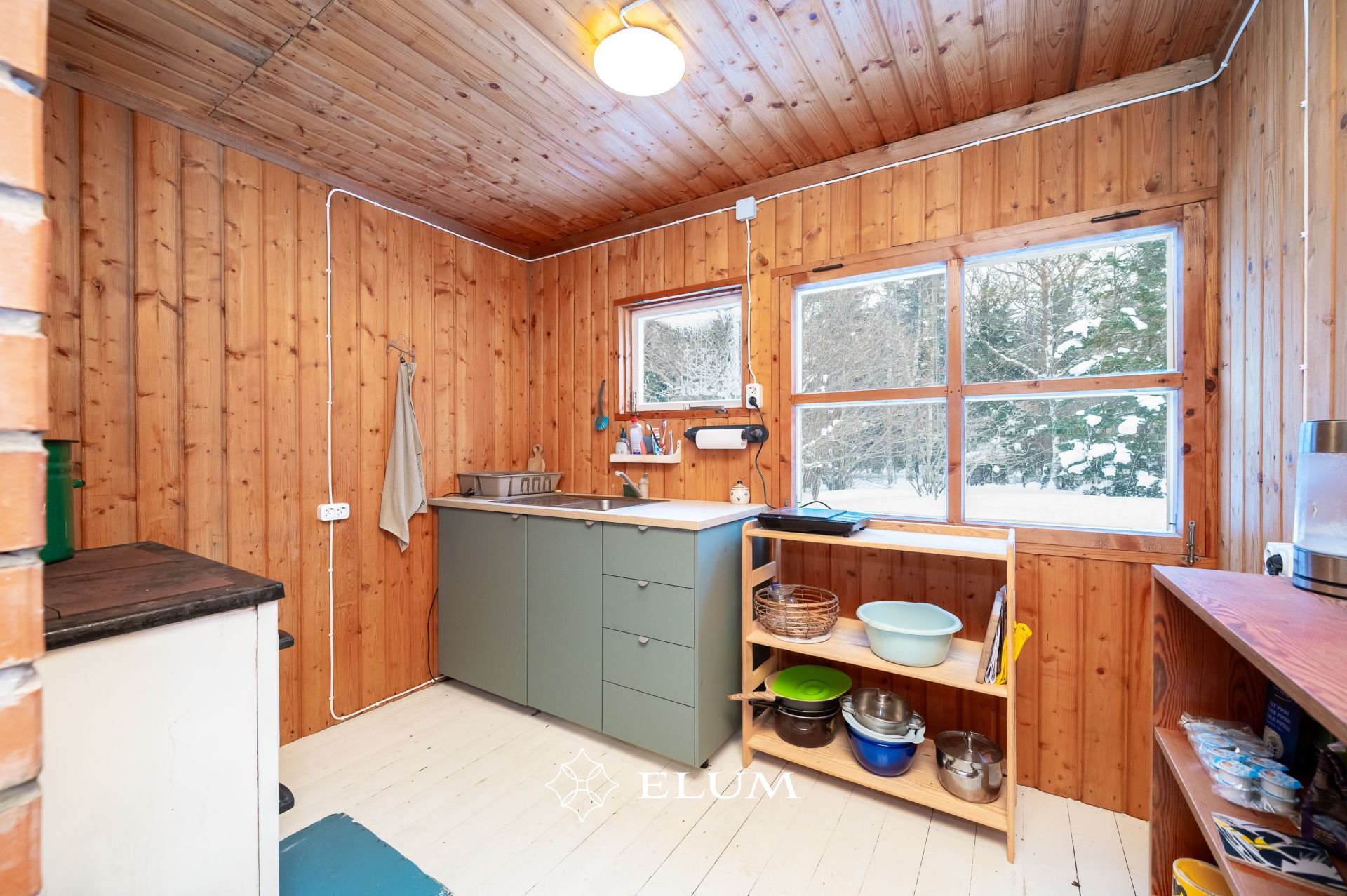 Siseviimistluses on kasutatud puitlaudist, mis loob sooja ja looduslähedase atmosfääri. Köögis on hästi hoitud IKEA köögimööbel.