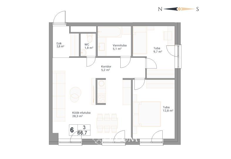 • Üldpind: 66.7 m2