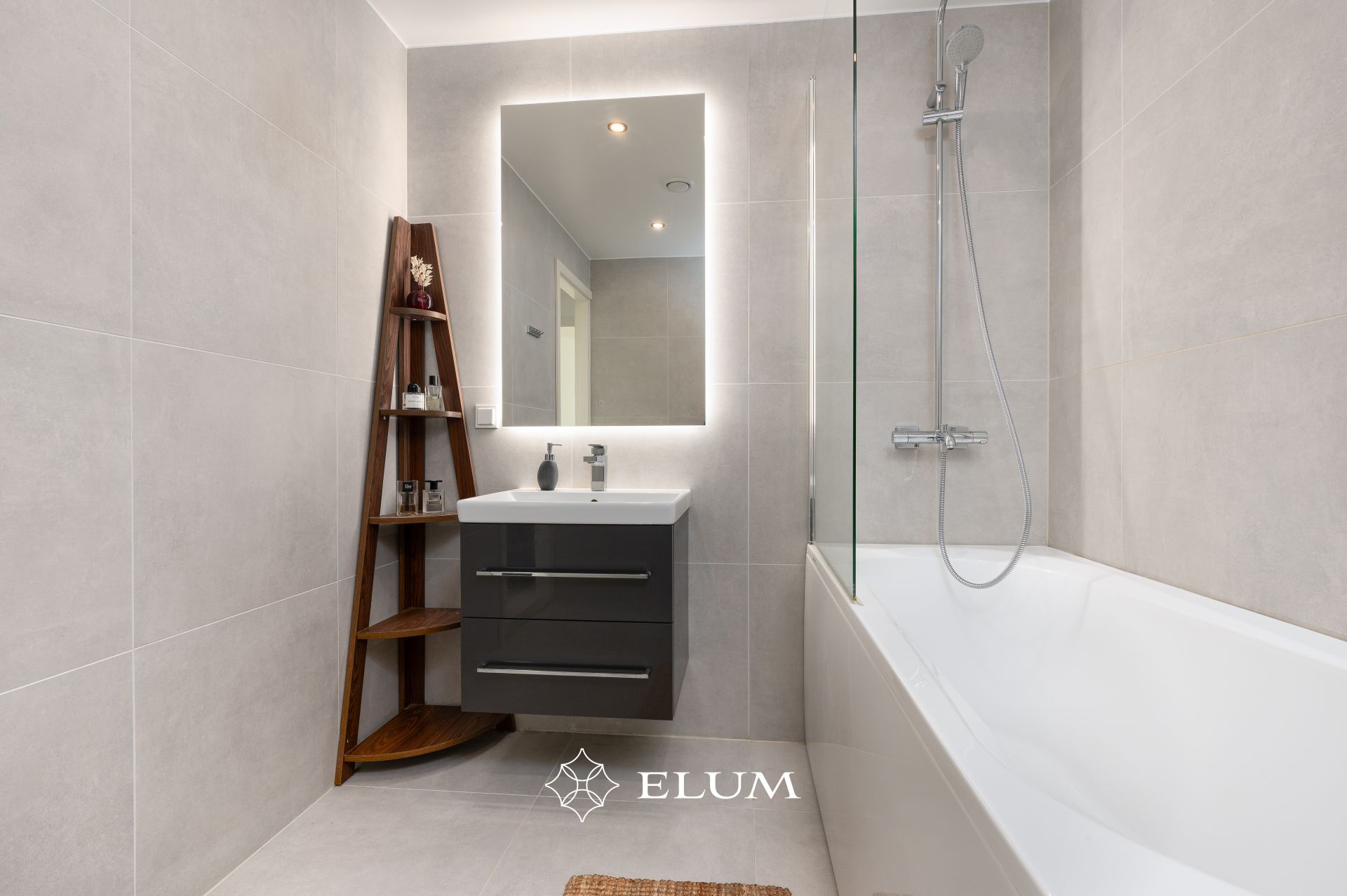 Siseviimistluses on kasutatud rahulikke värvitoone. Vannituba ja tualett on plaaditud, paigaldatud kvaliteetne sanitaartehnika tootjatelt Villeroy & Boch ja Hansgrohe. Tubade põandaid katab heledas toonis naturaalne tammeparkett ning esiku põrand on kaetud keraamilise plaadiga.