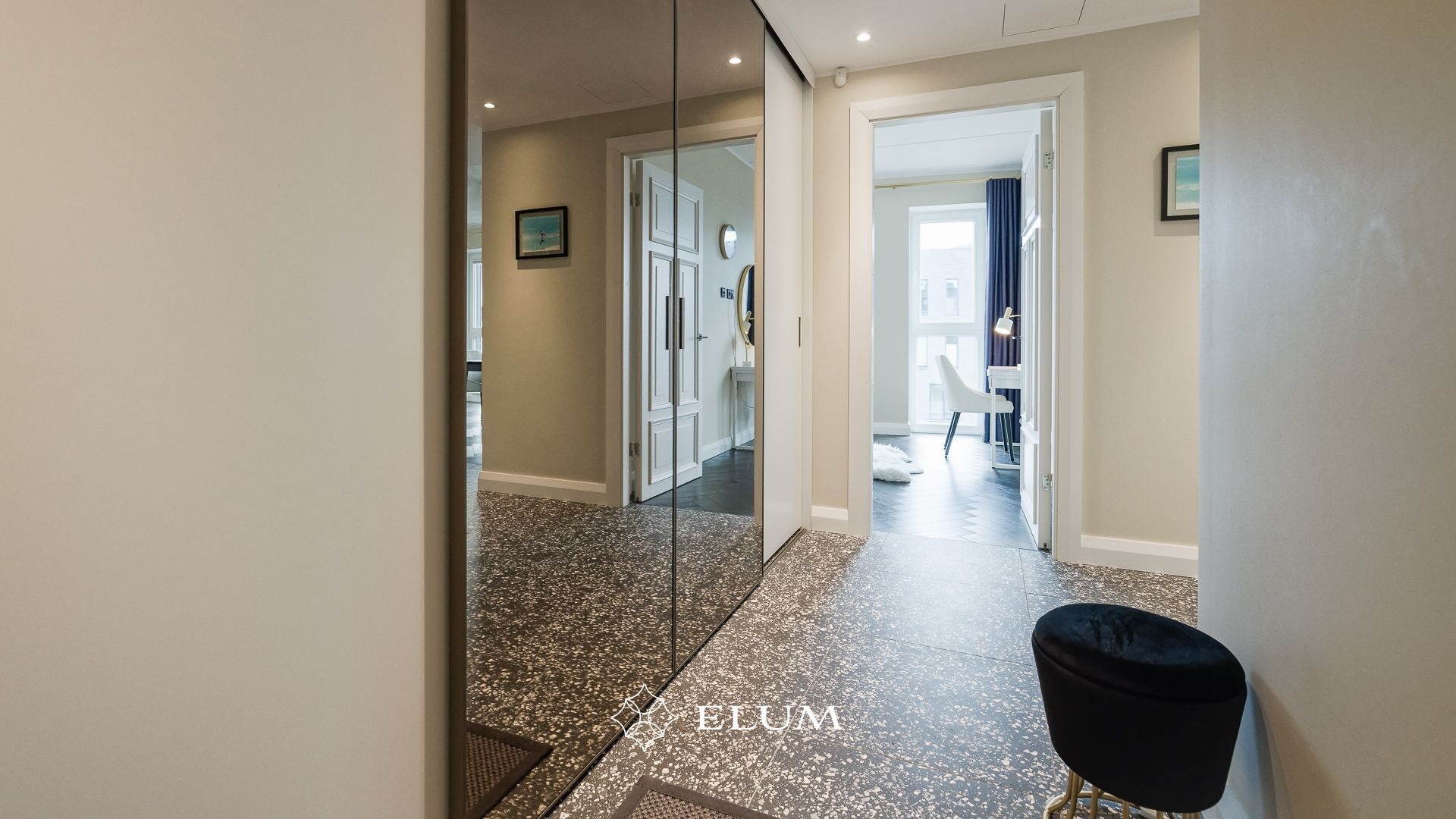 Sisenedes avarasse ja valgusküllasesse esikusse, leiab kohe integreeritud garderoobi, mis aitab hoida ruumi korras ja organiseerituna. Suured, maast laeni peegelpinnad loovad esikust veelgi avarama mulje. Privaatsest magamistoast avaneb vaade merele ja pääseb walk-in garderoobi ning vannituppa.